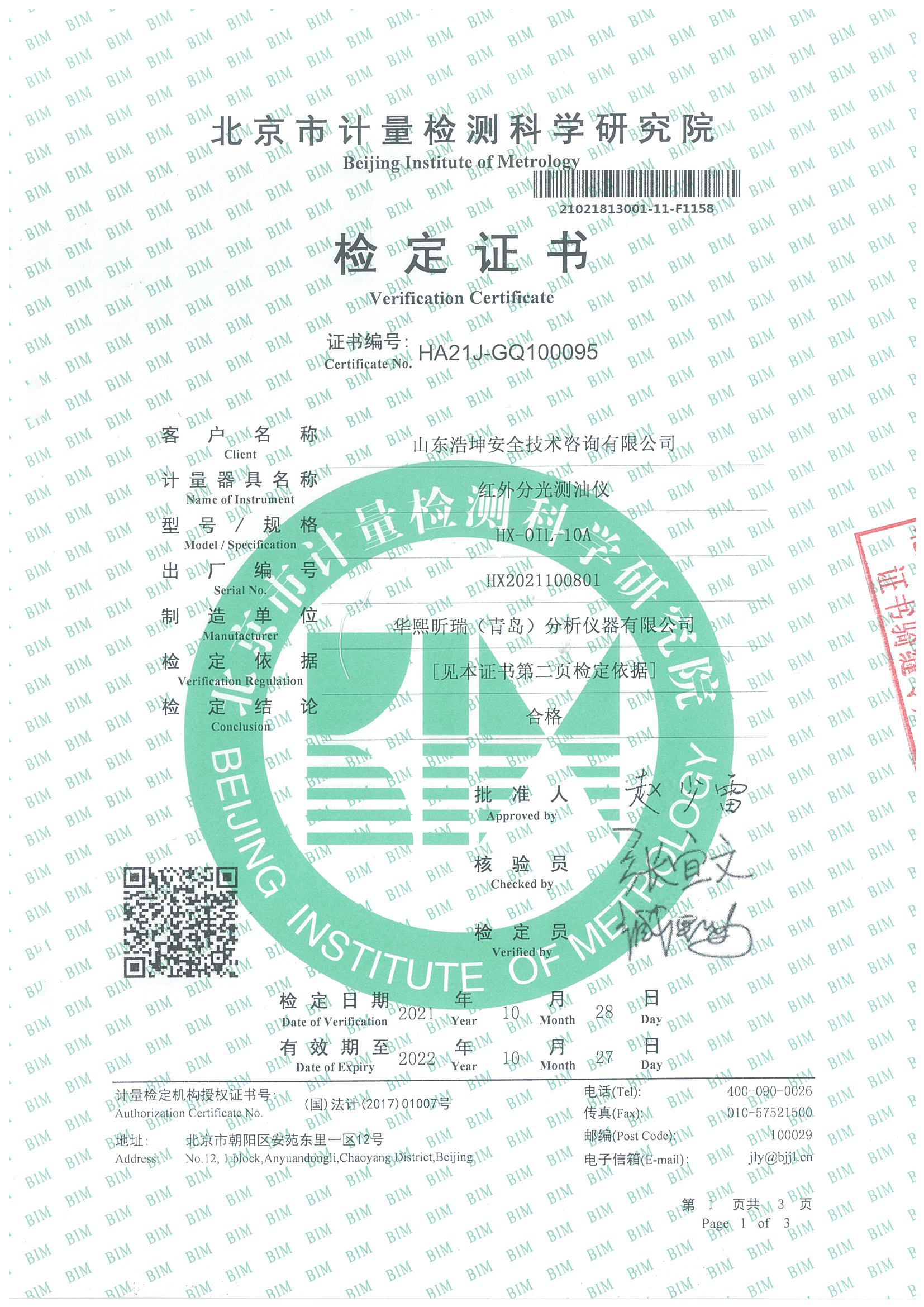 紅外測油儀計量證書